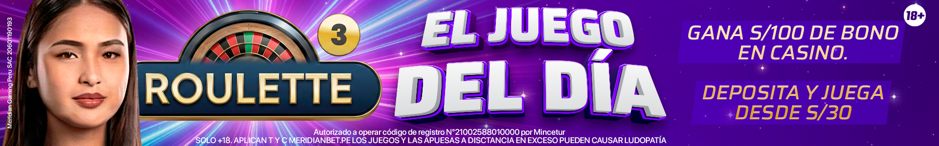 - Gana S/100 soles de BONO CASINO.
