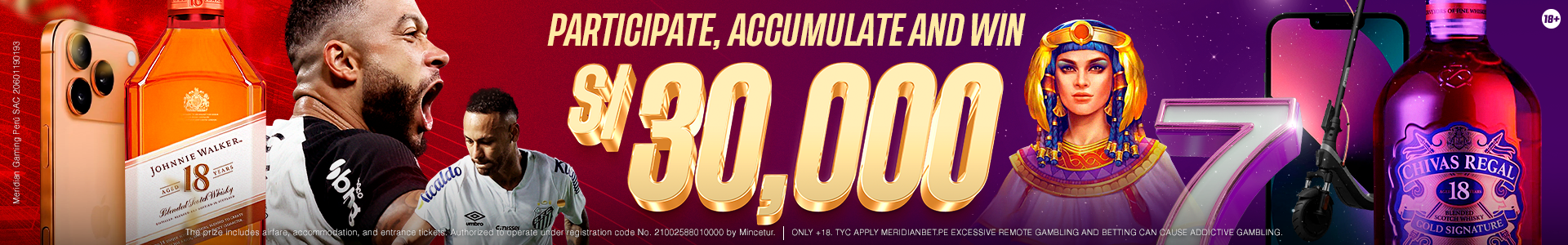 • For every S/20 wagered on selected leagues with a minimum total odd of 3.00 per ticket, the user will earn 1 point.