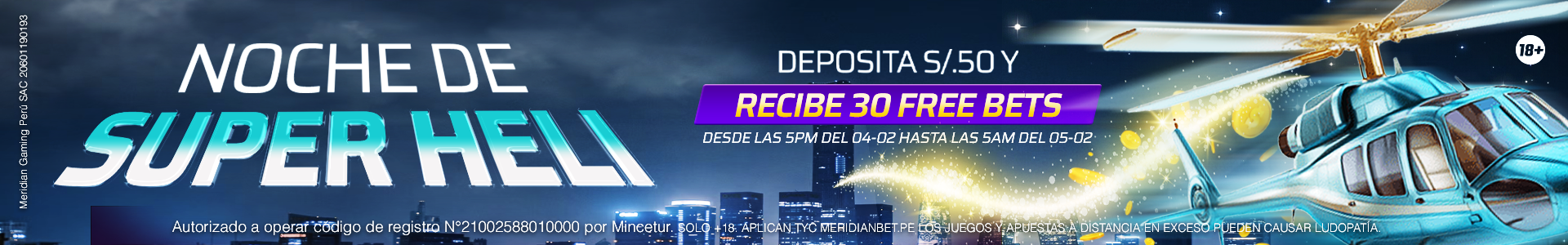 - Recibe 30 Freebets en Super Heli.