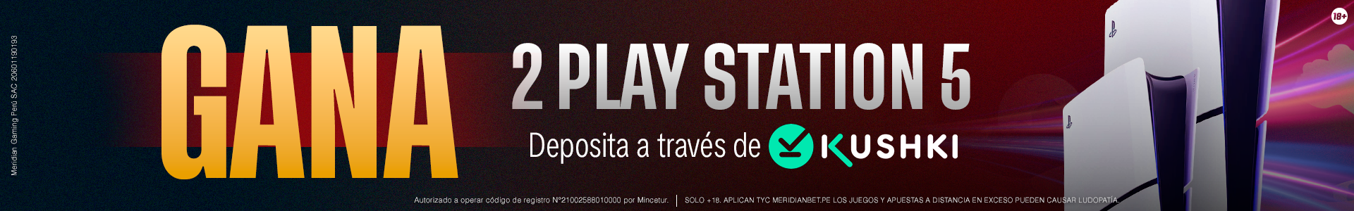 Realiza pagos con Kushki en Meridianbet durante la vigencia de la campaña y participa en sorteos por 2 PS5.