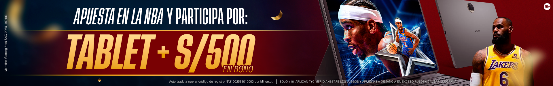 Deposita y realiza la mayor cantidad de tickets que incluyan eventos de la NBA, y Meridian te regala una Tablet + S/500 en bono.