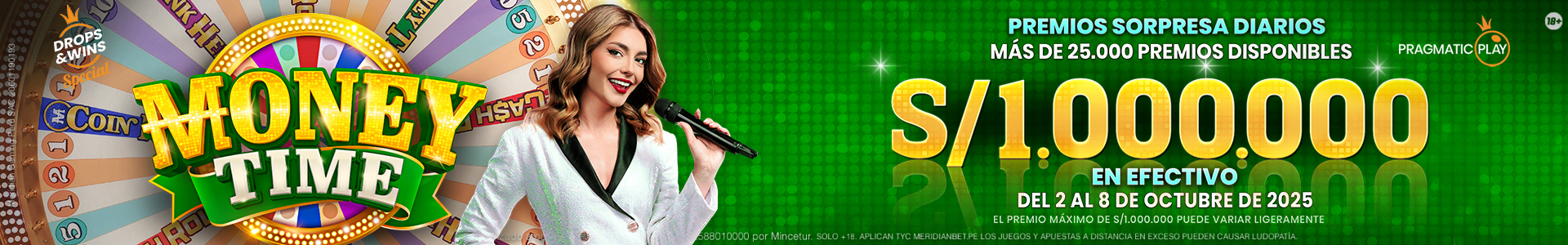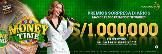 - Los primeros tres (3) Prize Drops de Money Time entregarán a los jugadores un total diario de ciento setenta y seis mil soles, (S/ 176 000) en forma de montos fijos en efectivo.