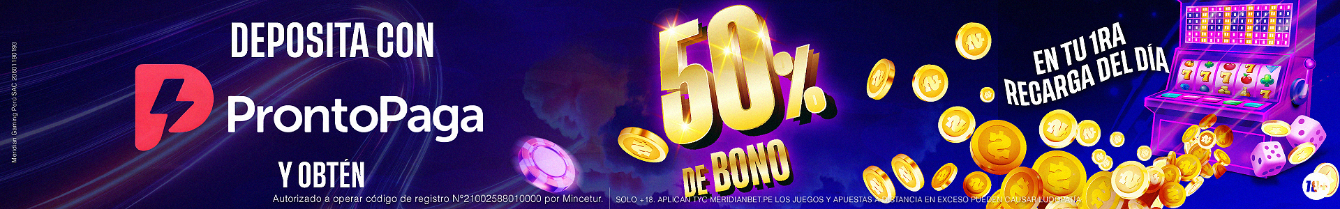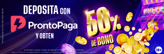 1ª recarga del día usando Pronto Paga obtienes 50% en bono de casino.